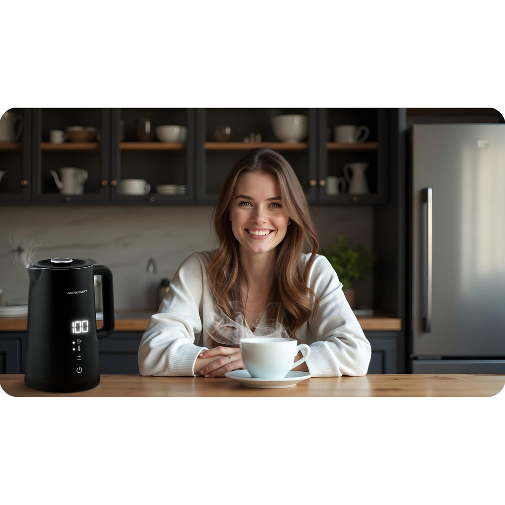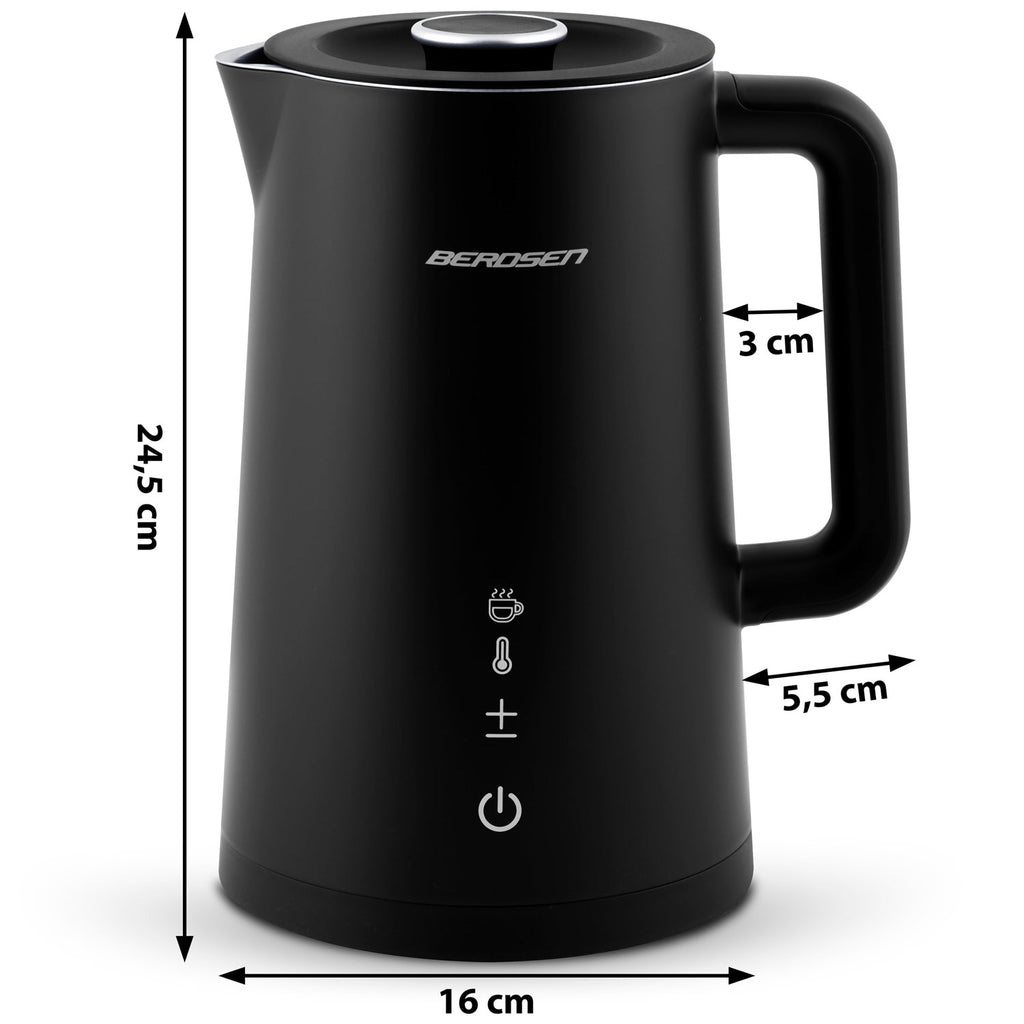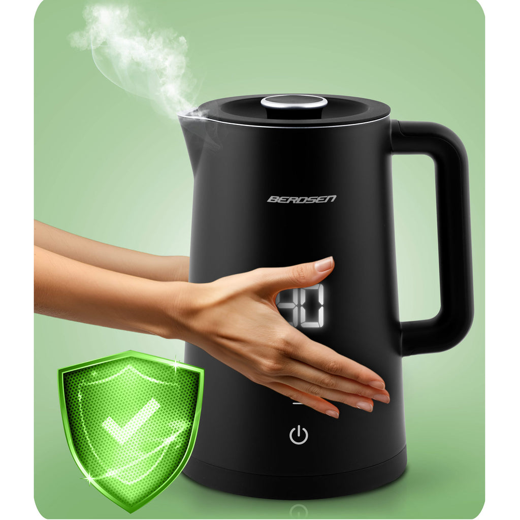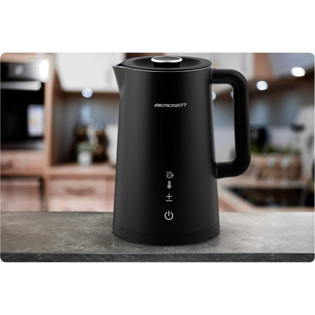 Pristatome 1,7 litro elektrinį Berdsen BD-709 arbatinuką juodą – idealų pasirinkimą, norint pasiekti greitą ir efektyvų vandens užvirimą. Šis arbatinukas ne tik atrodo moderniai, bet ir pasižymi puikia našumu, padedantis sutaupyti laiką ir pastangas ruošiant mėgstamus gėrimus, tokius kaip arbata, kava ar net maistas.