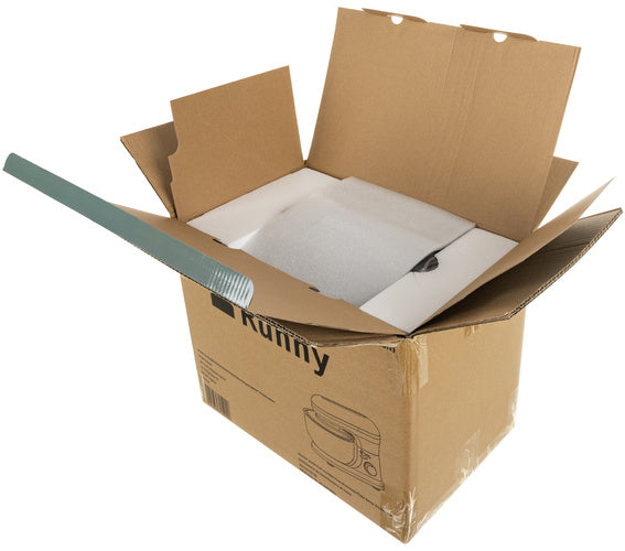 Priedai dedami į polistireno įdubą šoninė kartono dalis.
