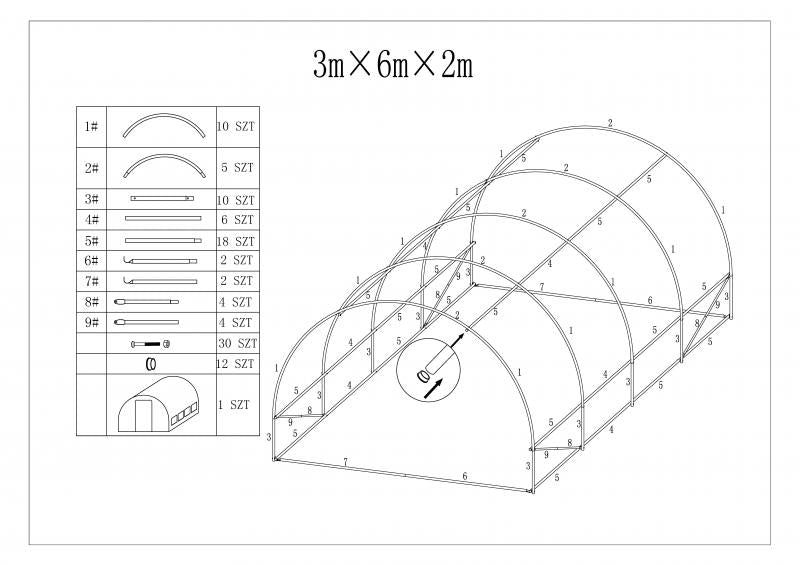 18 m2 (3x6 m) arkinio plastiko plėvelės šiltnamis