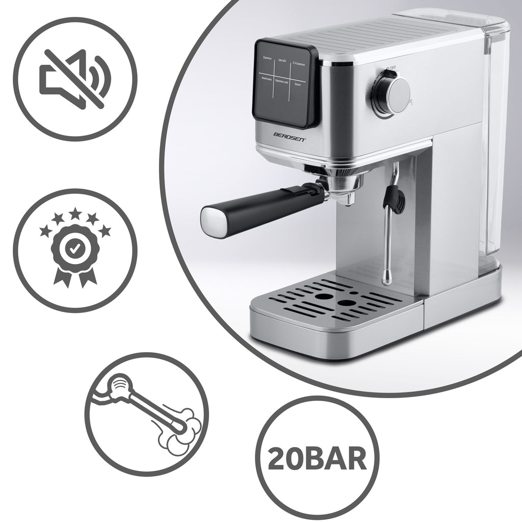 Pasirinkite 20 barų "Berdsen" BD-770 sidabro ekspresą ir patirkite profesionalios klasės kavos ruošimo privalumus savo namuose. Šis produktas ne tik pagerins jūsų rytinę rutiną, bet ir taps puikiu pokalbio pradžios tašku su draugais bei šeima. Įsigykite dabar ir mėgaukitės nepakartojama kava kiekvieną dieną!