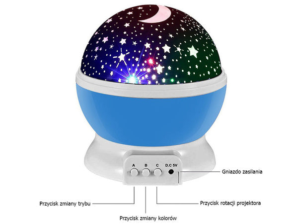 - Dualus naudojimas: Naudokite kaip naktinę lemputę arba žvaigždžių projektorių.