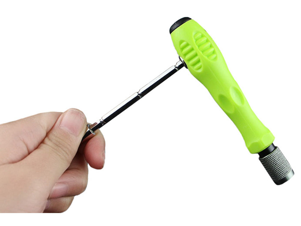 - 30 magnetinių antgalių, įskaitant: Phillips (PH000, PH00, PH0, PH1, PH2), plokščias (1,5 mm - 4 mm), Torx (T4 - T10), šešiakampis (H1.5 - H4.0), Y formos (Y2,0 mm, Y3,0 mm), trikampis (2,0 mm, 2,3 mm) ir pentalobe (0,8 mm, 1,2 mm, 2,0 mm).