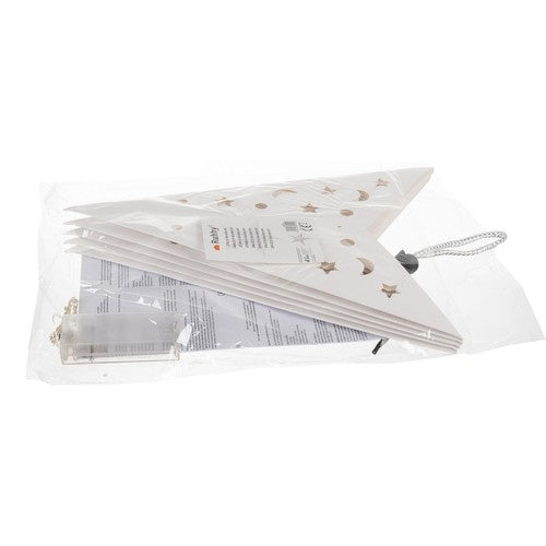 - VIDUJE LED LEMPUTĖS ANT LAIDO - komplekte su žvaigždute yra LED lemputės ant laido. Vielą galima įdėti į žvaigždės vidų, suteikiant jai nepaprasto kalėdinio papuošalo charakterį. Lempos šiltos baltos spalvos. Jie maitinami 2 x AA baterijomis.