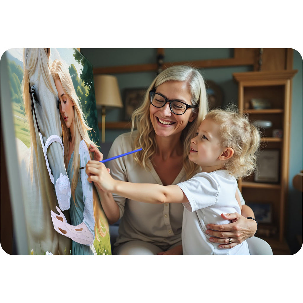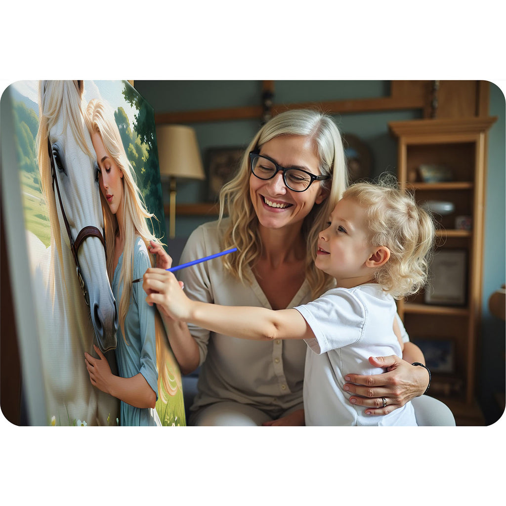 40x50 cm Massido Portretas moters su žirgu – tai ne tik meno kūrinys, bet ir jausmų bei istorijų atspindys. Šis nuostabus portretas pritraukia dėmesį ir suteikia jūsų erdvei unikalią atmosferą. Nepriklausomai nuo to, ar tai bus jūsų svetainė, miegamasis ar biuras, šis portretas puikiai papildys bet kurią aplinką ir bus puikus pokalbių pradžios taškas.