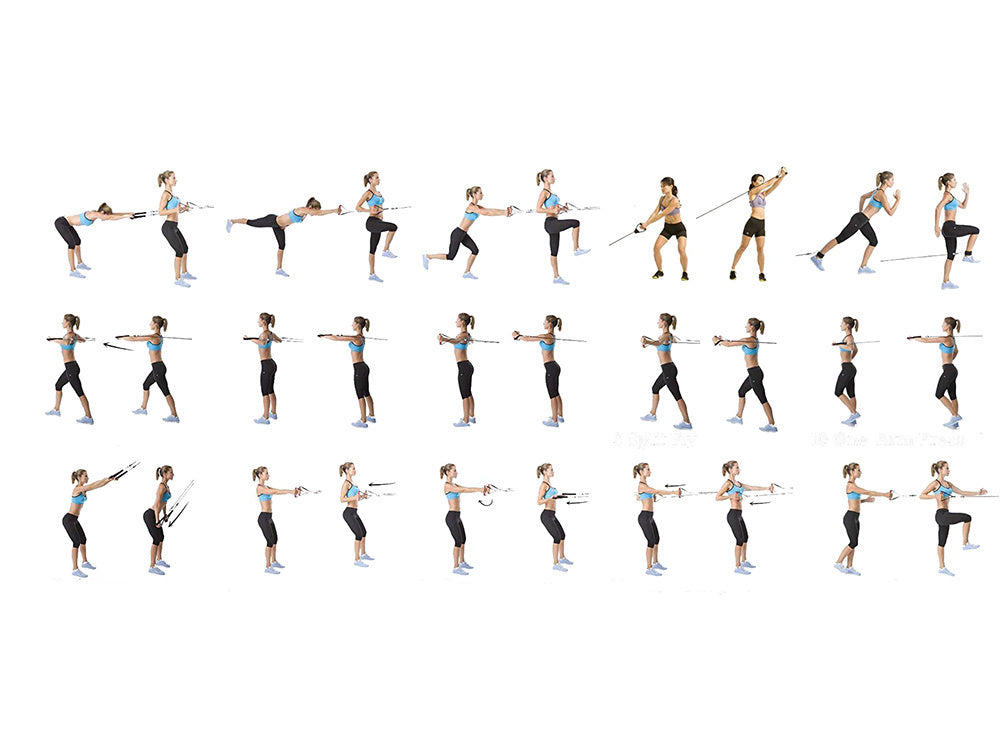 Įvairūs pratimai, atliekami su gumų rinkiniu: