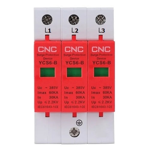 Viršįtampių ribotuvas, 3 kontaktų, B klasės, 30-60 kA, 385V