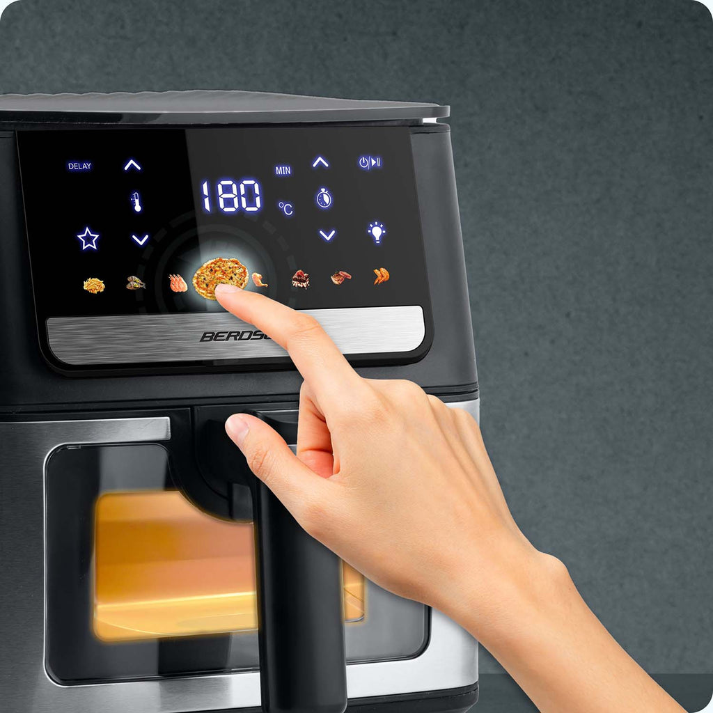 Efektyvi ir kompaktiška Berdsen BD-655 karšto oro gruzdintuvė, leidžianti kepti be aliejaus. Juoda spalva ir patogus valdymas – puikus sprendimas kiekvienai virtuvei.