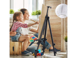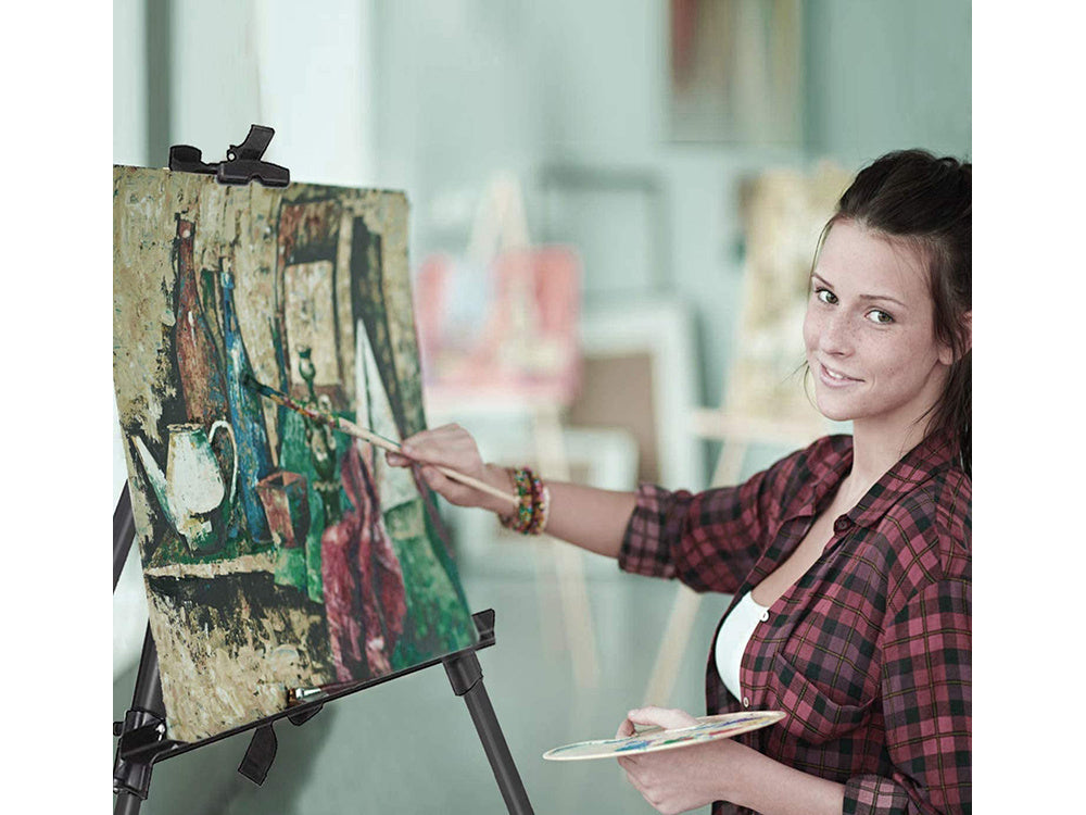 Šis lengvasir stabilus molbertas pagamintas iš aliuminio. Jis turi 3 segmentų reguliuojamas kojeles, todėl prie molberto galima pritvirtinti bet kokį paveikslo rėmelį. Kojos padengtos savaime išsilyginančiais, neslystančiais elementais, todėl molbertas apsaugotas nuo kritimo dirbant ir grindų subraižymo. Stovas turi kojų tarpo fiksatorių, todėl jį galima statyti sudėtingomis sąlygomis ant nedidelio paviršiaus. Ant pritvirtinto kablio galima pakabinti balastą ir padidinti rinkinio svorį. Pridėtas dėklas, kad jį būtų lengva pasiimti su savimi į mokyklą, lauką ar darbą. ✅ Produkto kodas: 01758 ✅ Aukštos kokybės apdirbimas ✅ Medžiaga: aliuminis ✅ Nelygiuojančios kojelės ✅ Minimalus stovo aukštis: Aukščiausias galinis matmuo: 51 cm ✅ Didžiausias stovelio aukštis: 160 cm ✅ Atramos plotis: Stovo plotis: 48,5 cm ✅ Didžiausias nuotraukos, paveikslo aukštis: 58cm ✅ Spalva: juoda ☑️ Naujas gamyklinis molbertas ☑️ Dangtelis ☑️ Originali pakuotė