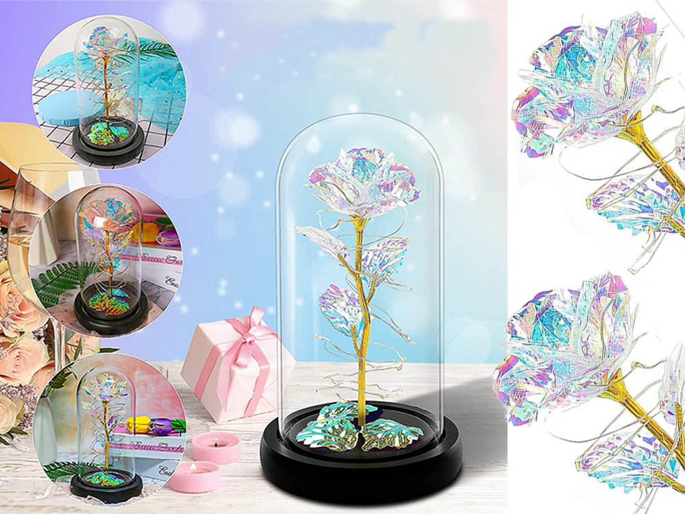 Ši rožė keičia spalvą priklausomai nuo aplinkos – raudoni atspalviai puikiai dera su šiltais fonais, o mėlyni tonai suteikia unikalią atmosferą. Pagaminta iš aukštos kokybės medžiagų, šis produktas ne tik džiugins akį, bet ir tarnaus ilgai.