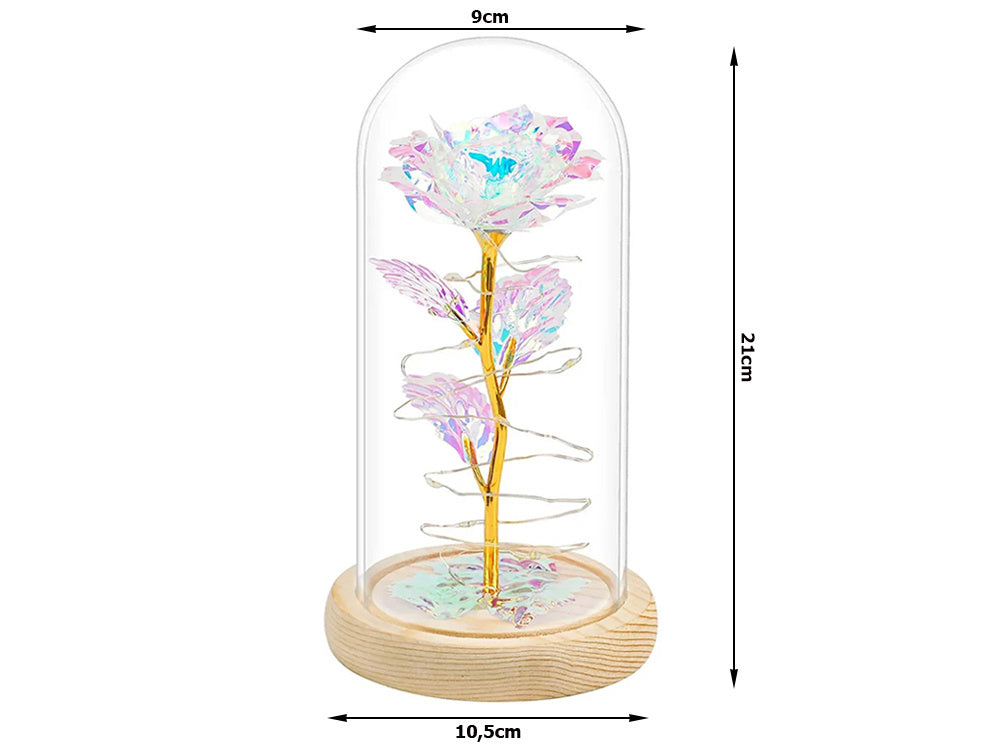 - ✅ Elegantiška dizaino detalė: Stiklinė dėžutė, akcentuojanti rožės grožį ir apsauganti ją nuo dulkių.