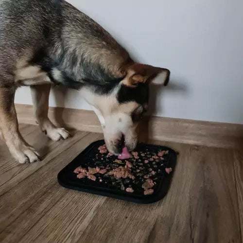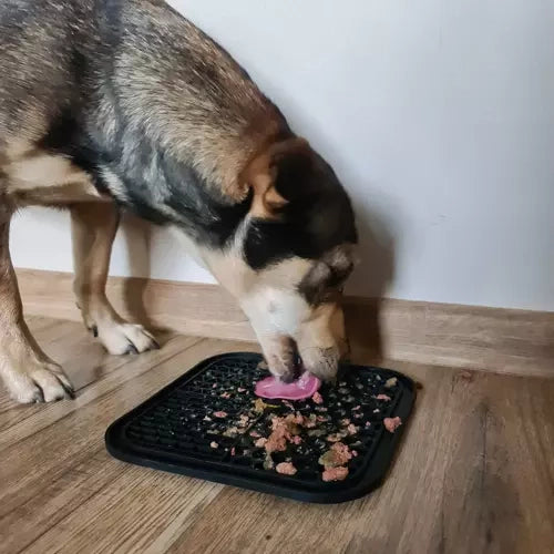 Jei jūsų augintinis patiria stresą dėl apsilankymo pas veterinarą, maudymosi ar džiovinimo plaukų džiovintuvu, nemėgsta šukuoti plaukų, o gal jis tiesiog išrankus, turime jam puikų kilimėlį. Silikoninis kilimėlis su išsikišimais skaniam maistui, paštetui, pastai ar kitos savos kompozicijos laižymui leis Jūsų laiką maloniau, atsipalaiduoti ir sužadins pojūčius. Jūsų šuo ar katė bus patenkinti. Produktas rekomenduojamas įvairaus amžiaus gyvūnams, šuniukams, kačiukams ir vyresniems augintiniams jis patiks.