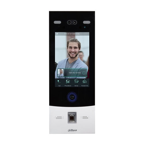 Apartment IP lauko telefonspynės spalvota kamera LCD liečiamu ekranu 8”, 2MP 88° kamera, su skaitmeniniu veido atpažinimu, su pirštų antspaudų nuskaitymu. Skambinimas į monitorius, valdymo centrą, mobilujį telefoną, planšetinį kompiuterį, H.264, IC kortelių skaitytuvas, judesio detekcija; IP66 atspari vandeniui, IK07 atspari smūgiams, aliuminio lydinio rėmas, tinka naudojimui lauke. Modelis: VTO7541G-S2.