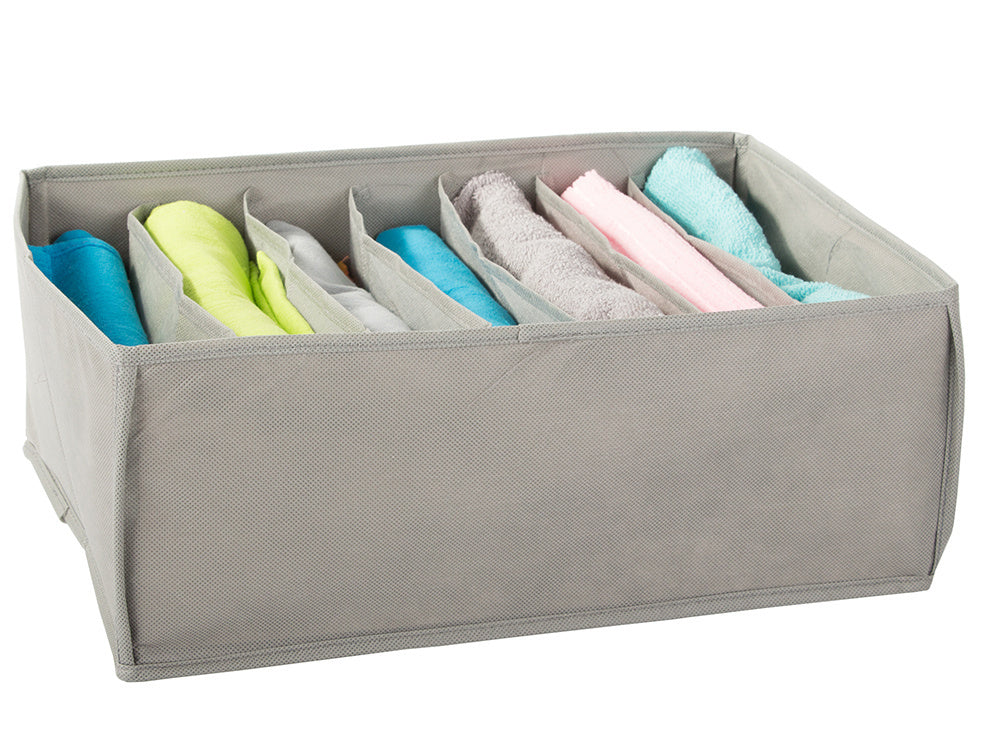 Organizuokite savo apatinius drabužius su Apatinio trikotažo organizatoriumi liemenėlės spintos stalčiui 7 skyriai šiukšliadėžė. Šis praktiškas ir stilingas organizatorius idealiai tinka laikyti liemenėles, kojines, kaklaraiščius ar diržus, užtikrinant, kad jūsų stalčius atrodytų tvarkingas ir funkcionalus.