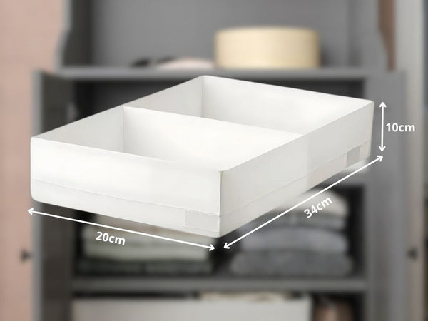 Įvairiapusis apatinių drabužių kojinių stalčių drabužių organizatorius su pertvara baltas yra puikus sprendimas, padedantis palaikyti tvarką Jūsų drabužių spintoje. Su savo 20x34x10 cm matmenimis, šis tekstilinis organizatorius yra idealus pasirinkimas laikyti apatiniams drabužiams, kojinėms, pėdkelnėms ir kitiems smulkiems aksesuarams.
