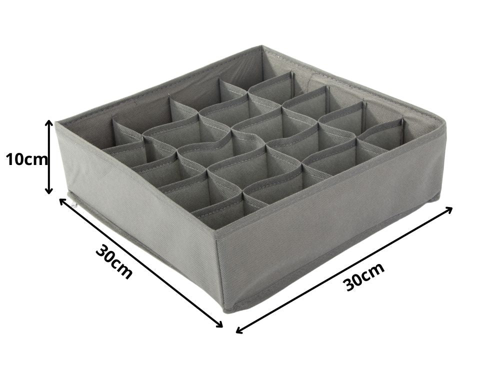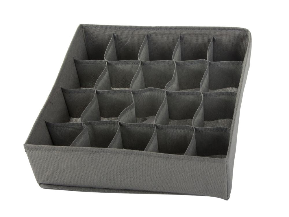 Ieškote būdo, kaip efektyviai organizuoti savo apatinius drabužius ir kojines? Apatinių drabužių organizatoriaus kojinių stalčių spintos įdėklas 20 skyrių yra idealus pasirinkimas! Šis praktiškas organizatorius, matmenų 30x30x10 cm, puikiai tinka tvarkyti ne tik kojines, bet ir kaklaraiščius bei kitus smulkius aksesuarus.