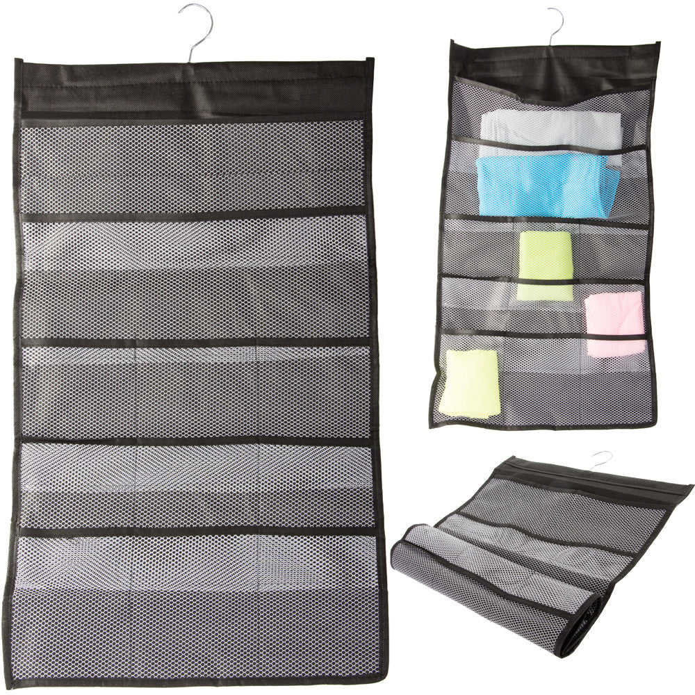 Organizuokite savo apatinius drabužius su pakabinamu organizatoriumi spintai – dvipuse 22 kišenių pakaba! Šis praktiškas sprendimas padės jums sutaupyti vietos ir tvarkingai laikyti visus jūsų drabužius.