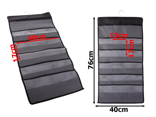 Apatinių drabužių organizatorius pakabinama spinta dvipusė 24 kišenės – tai idealus sprendimas, norint sutvarkyti jūsų drabužių spintą ir padaryti ją funkcionalesne. Šis pakabinamas organizatorius turi 24 kišenes, leidžiančias lengvai laikyti apatinius drabužius, kojines, pėdkelnes ir liemenėles. Dėl šios struktūros, viskas yra po ranka ir jūs galėsite greičiau pasirinkti tinkamus drabužius kasdienai.