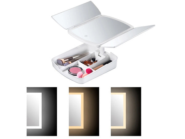 Šis apšviestas makiažo led kosmetikos veidrodis yra ne tik funkcionalus, bet ir stilingas. Jis puikiai tinka kelionėms, kadangi viską, ko jums reikia, galite sutalpinti viename prietaisą.