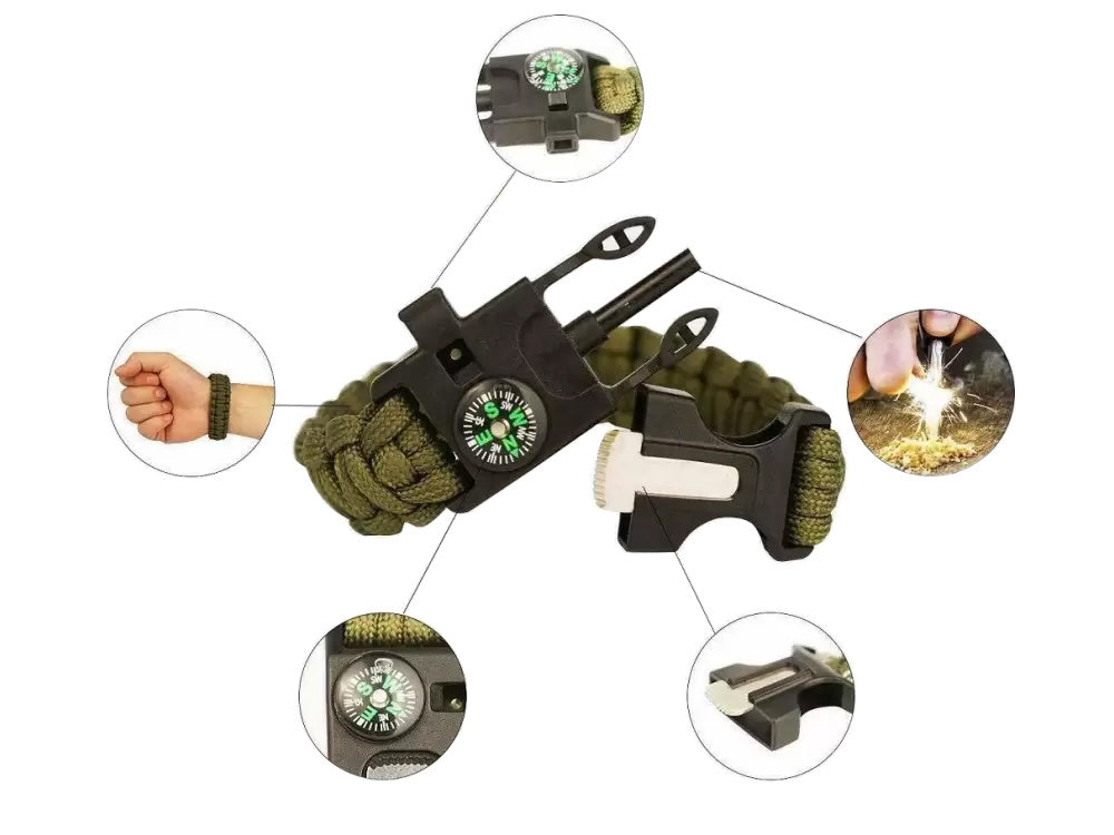 Išgyvenimo apyrankė - tai nepakeičiamas įtaisas, reikalingas nuotykių žygyje, stovyklaujant ar miške. Išgyvenimo apyrankė padidina jūsų šansus išgyventi. Avarinis rinkinys, kurį galite pasiimti su savimi bet kur. Apyrankė pagaminta iš patvarios medžiagos, joje yra virvė, peilis, kompasas, švilpukas ir flinta. Visa tai užsegama tvirta sagtimi . Be to, ji tarnauja kaip stilinga puošmena, nešiojama ant rankos. Užsegime yra nedidelis strypas, kuris kartu su peiliu tarnauja kaip flinta, kad būtų galima uždegti laužą , tiesiog trinant peilį į strypą, kad atsirastų kibirkščių. Jame taip pat yra kompasas , padedantis visada rasti teisingą kelią. Apyrankėatspari vandeniui, todėl ją galite nešioti bet kokiomis oro sąlygomis, be to, ji yra lengva ir papildomai neapsunkina. 1. kompasas 2. peiliukas 3. žvangučio užraktas 4. virvę 5. švilpukas ✅ Produkto kodas: 14372_Z ✅ Pagaminta iš aukštos kokybės medžiagų ✅ Paracord tipo virvė ✅ Įmontuotas kompasas ✅ Grandininis pjūklas ✅ Peilis ✅ Puikiai tinka išgyvenimo kelionėms ✅ Užrakinama tvirta sagtimi ✅ Ilgis: 26 cm ✅ Plotis: 2,5 cm ✅ Spalva: žalia ☑️ Gamyklinė nauja apyrankė ☑️ Folijos pakuotė