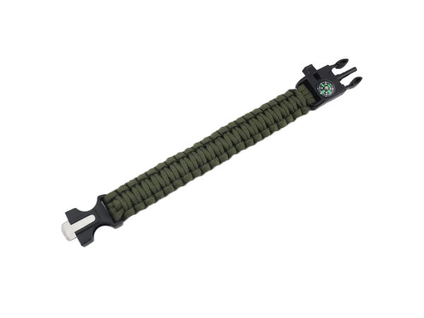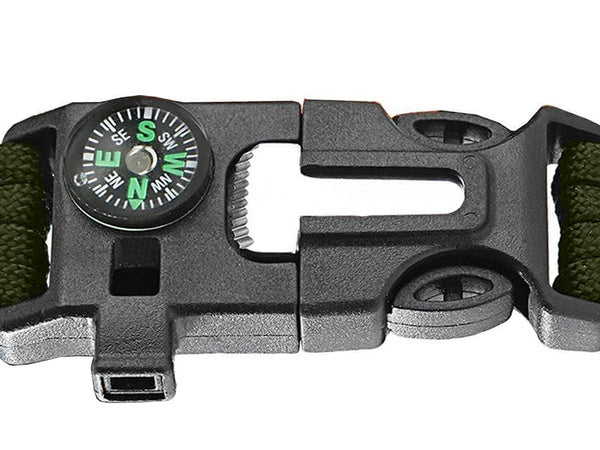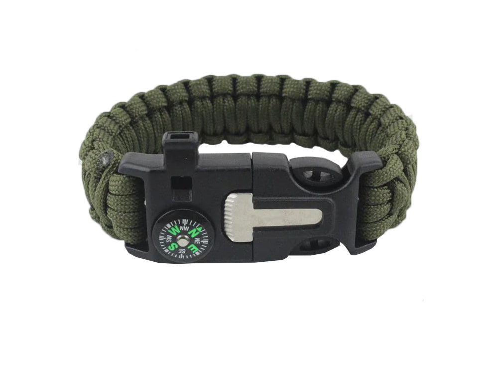 IŠGYVENIMO APYRANKĖ 5IN1 KOMPASAS FLINTO VIRVĖ PEILIS PARACORD VIRVĖ