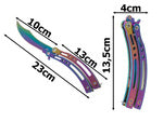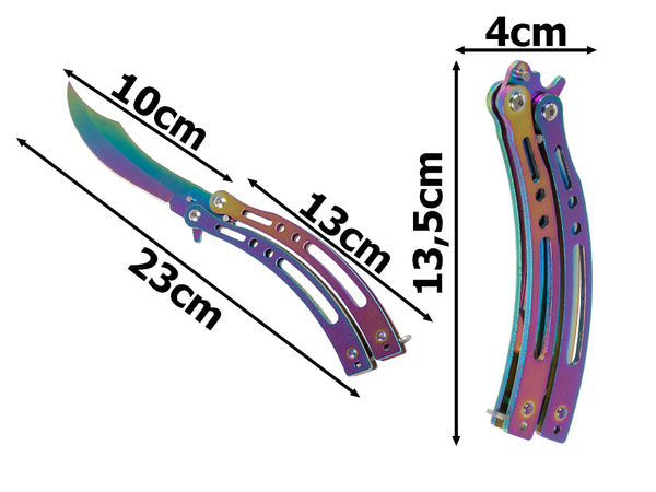Svajojate apie peilį, kuris ne tik atitiktų visus funkcinius reikalavimus, bet ir išsiskirtų neįprastu dizainu? Jei taip, tuomet mūsų aštrus aštrus drugelinis peilis "rainbow fade" yra būtent tai, ko jums reikia. Būdami peilių entuziastai, žinote, kaip svarbu, kad šis įrankis ne tik puikiai atliktų savo paskirtį, bet ir būtų unikalus savo dizainu. Šis peilis puikiai sujungia šias dvi savybes. Šiame peilyje įrengtas patikimas fiksavimo mechanizmas, kuris apsaugo nuo atsitiktinio ašmenų atidarymo ir uždarymo , todėl nešiodamiesi jį kišenėje galite būti ramūs. ✅ Produkto kodas: 01892 ✅ Pagamintas iš aukštos kokybės medžiagų ✅ S arfa ✅ Vaivorykštė ✅ Kontūruota rankena ✅ Bendras ilgis: 23 cm ✅ Sulankstytas ilgis: 13,5 cm ✅ Geležtės ilgis: 10 cm ✅ Spalva: vaivorykštinė ☑️ Gamyklinis naujas peilis su drugeliu ☑️ Originali pakuotėAŠTRUS SULANKSTOMAS PEILIS "BUTTERFLY" VAIVORYKŠTINIS IŠBLUKIMAS