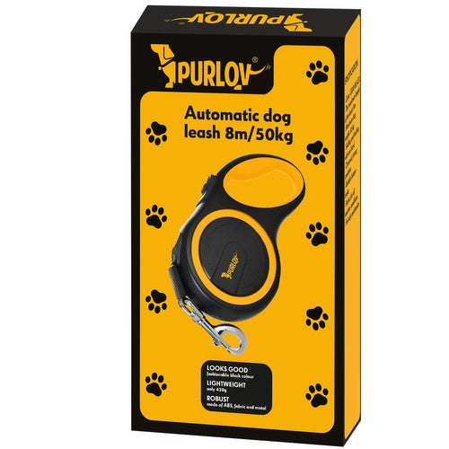 - SPECIFIKACIJOS - spalva: juoda, geltona; medžiaga: ABS, kita: TPR + poliesteris + cinko lydinys; maksimalus šuns svoris: 50 kg; juostos plotis: 1,5 cm; išmatavimai: 24 x 11 x 4cm; juostos ilgis: 8m; svoris: 430g; svoris pakuotėje: 491g.