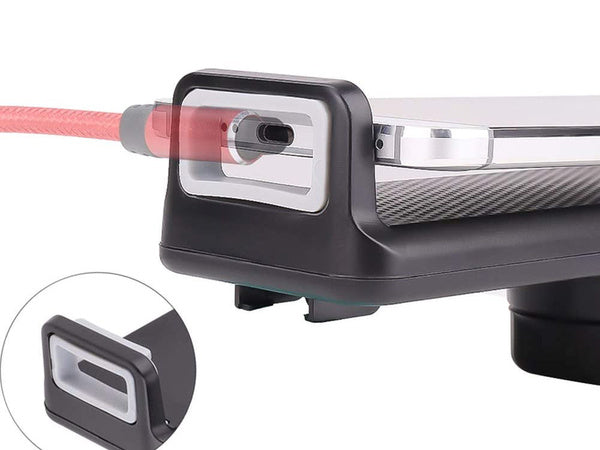 - Laikiklio žandikauliai tvirtai laiko telefoną, užtikrindami maksimalų saugumą.