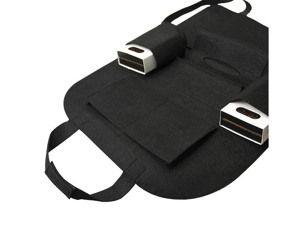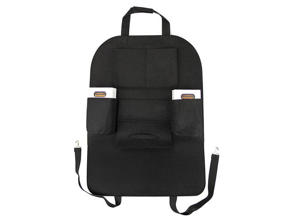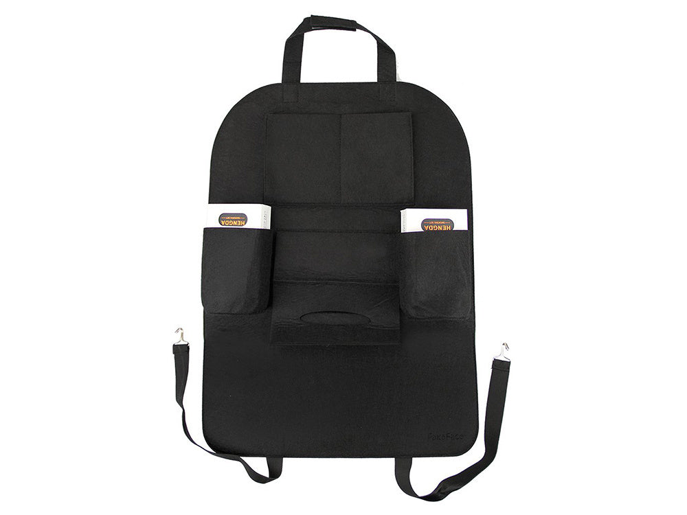 Montavimas yra paprastas ir greitas: tereikia atlaisvinti velcro ir pritvirtinti organizatorių prie sėdynės atlošo. Dėl kabliukų ir kilpų juostelių, jis tvirtai laikysis ir nejudės, net ir važiuojant nelygiu keliu.