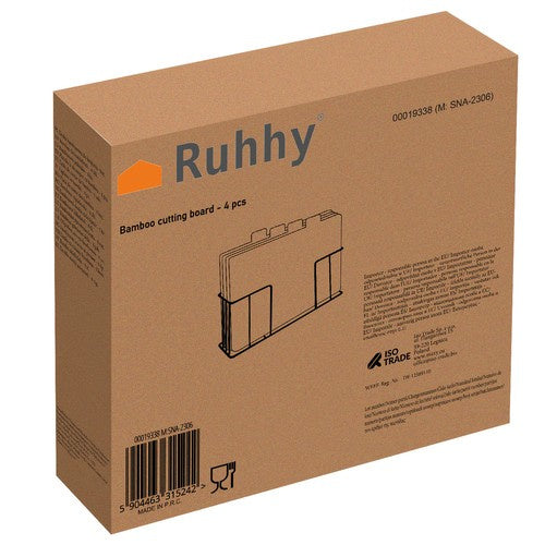 Įvairios paskirties bambuko medienos virtuvės lentų komplektas stovo dėka užima mažai vietos, o po ranka visada turėsite keturias lentas. Kiekviena lenta yra pažymėta ir skirta pjaustyti ar patiekti kitus produktus: žuvį, mėsą, daržoves ir vaisius, duoną.