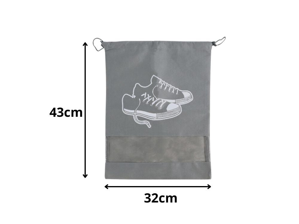 Susipažinkite su batų krepšiu drabužių laikymo krepšiu kelionėms su virvele pilka – praktišku ir stilingu sprendimu jūsų kelionėms! Šis erdvus 43x32 cm dydžio krepšys yra puikus pasirinkimas tiems, kurie nori išlaikyti tvarką savo lagamine ar kuprinėje.