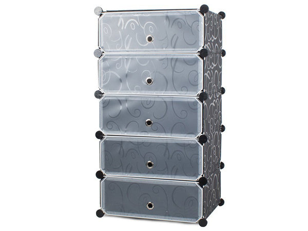 Patirkite naują organizacijos lygį su moduline 5 lygių batų lentyna, idealiai tinkančia jūsų namams, drabužinei ar prieškambariui. Ši batų spinta ne tik padės tvarkingai laikyti batus, bet taip pat gali būti naudojama drabužiams ir kitiems patogiems daiktams saugoti. Jos elegantiškas dizainas su gražiu raštu puikiai dera prie bet kokio interjero.