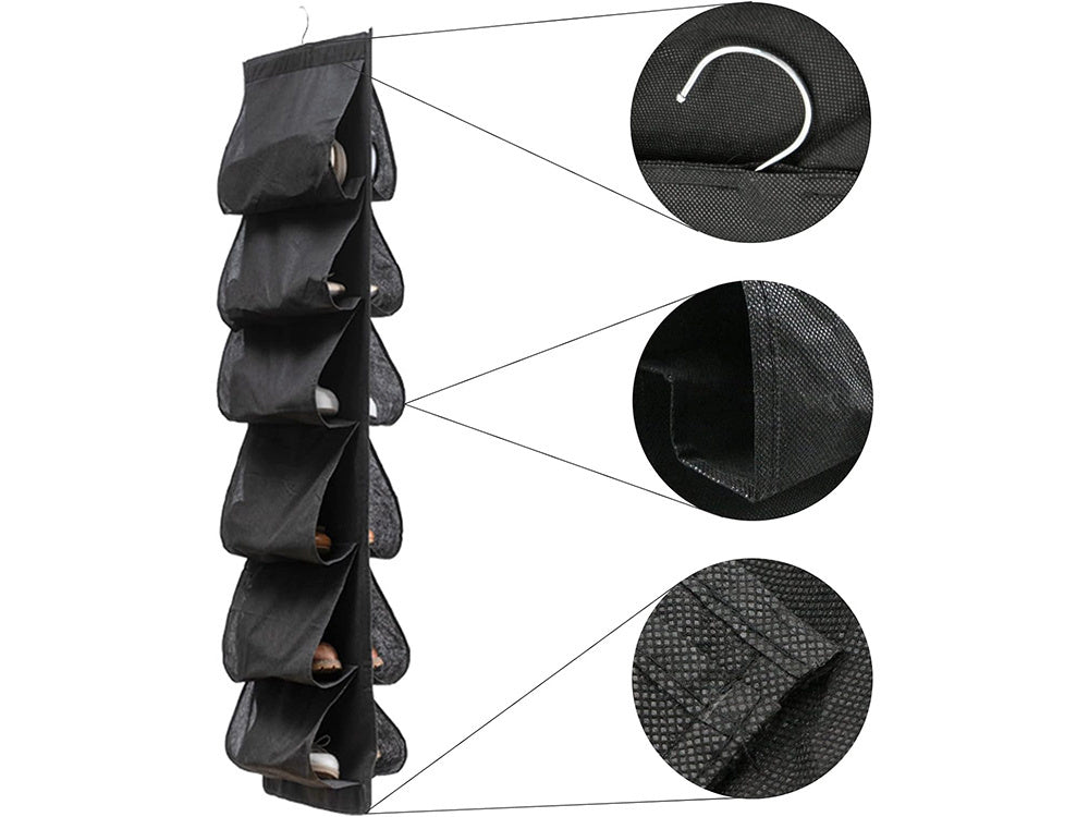 Pagamintas iš aukštos kokybės, tvirtų medžiagų, mūsų batų organizatorius užtikrina, kad jūsų batai bus saugūs ir gerai apsaugoti nuo pažeidimų. 12 specialiai sukurtų kišenėlių leidžia lengvai ir patogiai išdėstyti jūsų mėgstamus batus, kad kiekvienas pora būtų greitai pasiekiama.