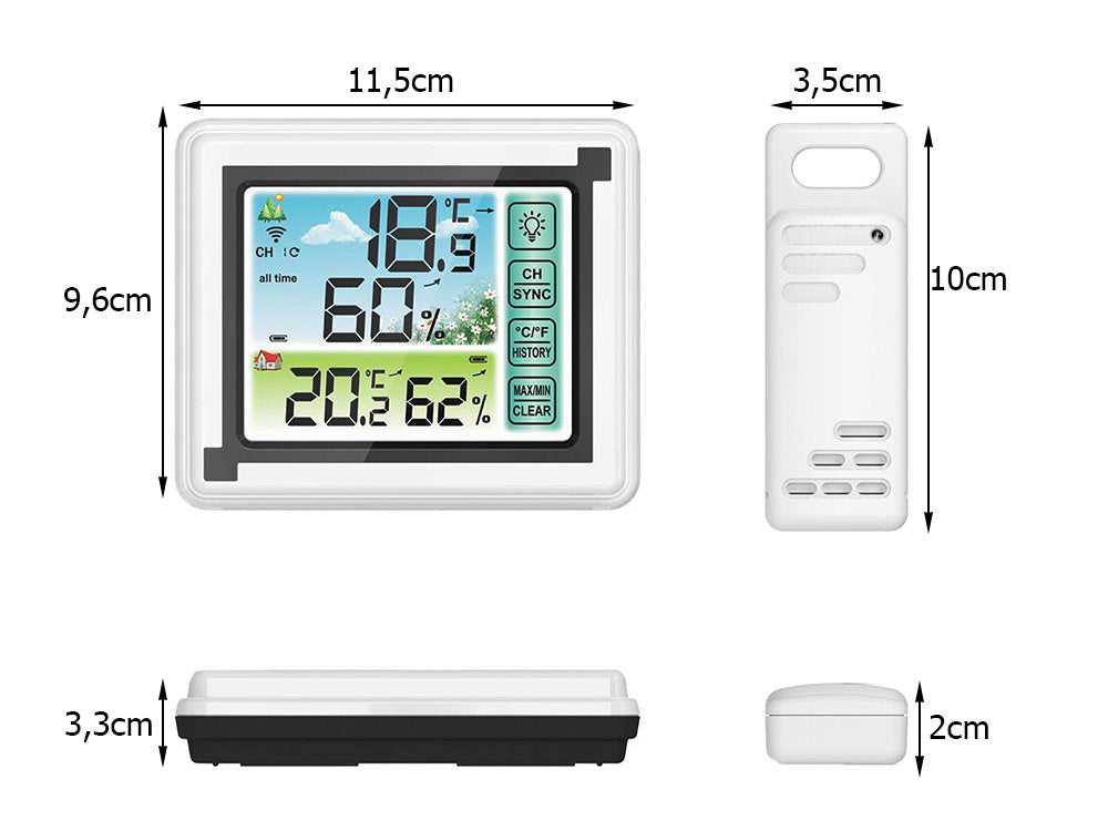 Belaidė meteorologinė stotis higrometras yra modernus ir stilingas sprendimas, puikiai tinkantis bet kuriai patalpai. Šis prietaisas padės jums lengvai stebėti temperatūrą ir drėgmę tiek viduje, tiek lauke, užtikrinant realiuoju laiku atnaujinamus duomenis.