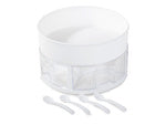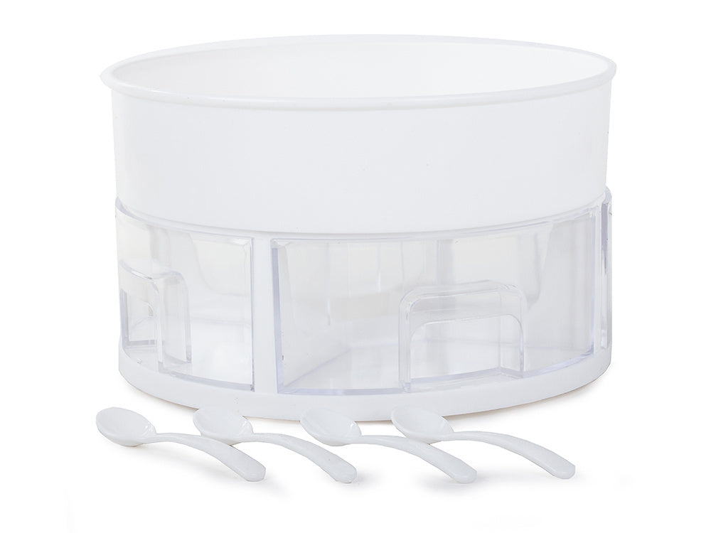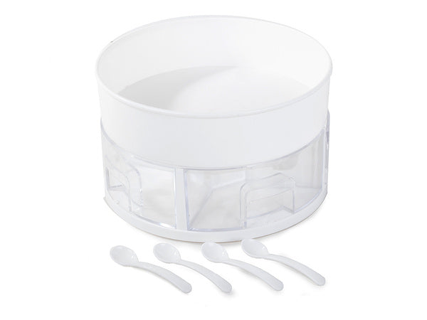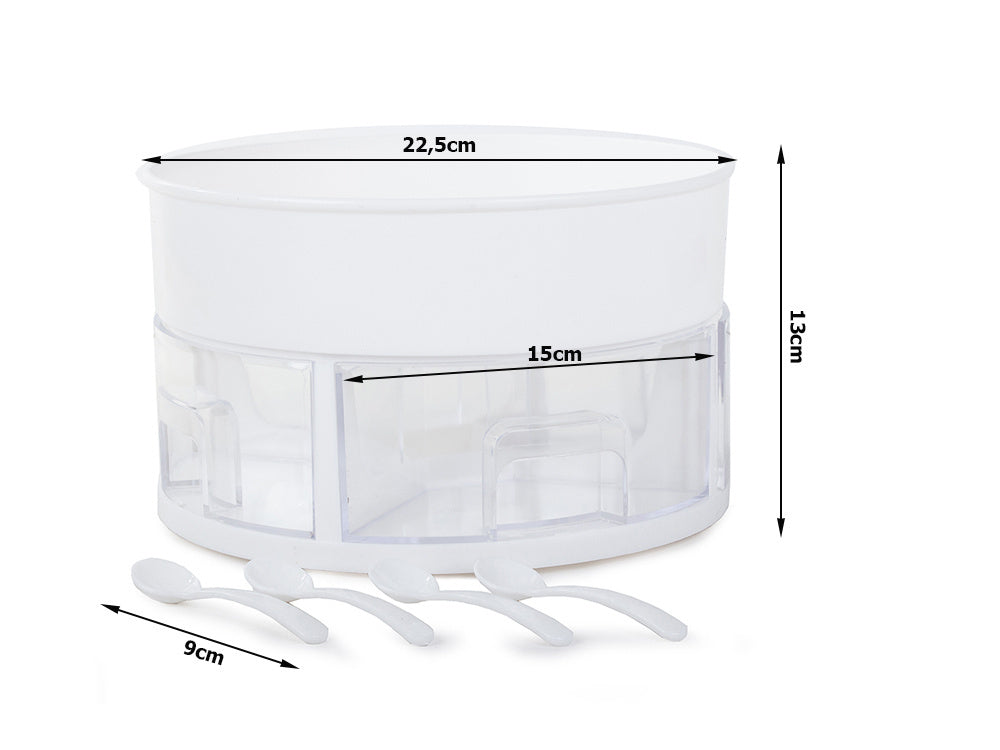 - Į komplektą įeina keturi plastikiniai šaukšteliai, po vieną kiekvienam stalčiui, kad galėtumėte lengvai dozuoti norimas medžiagas.