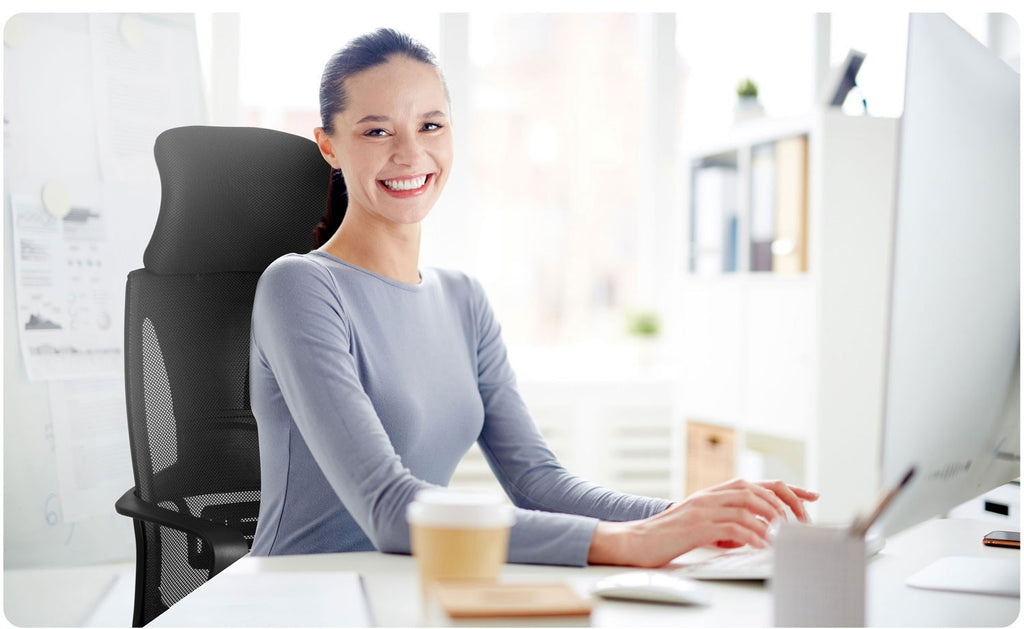 „Ši kėdė pakeitė mano darbo patirtį! Dabar galiu dirbti ilgiau be jokių skausmų.“ – Laura