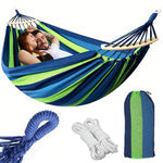 - Lengvas pakabinimas: komplekte yra dvi virvės, leidžiančios lengvai pritvirtinti hamaką prie medžių ar stulpų.