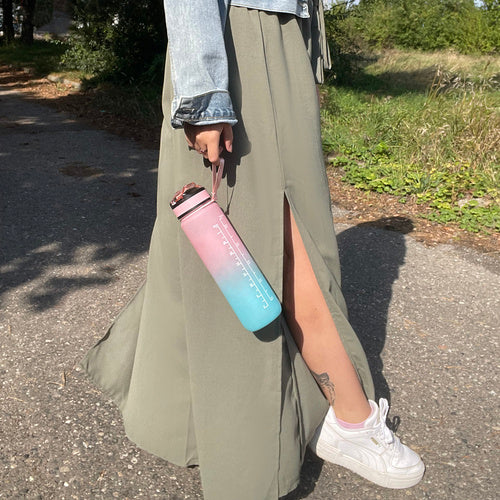 - PRAKTIŠKAS IR MOTYVUOJAMAS - buteliuke yra padalos tiek mililitrais (iki 1000 ml), tiek uncijų (iki 32 uncijų) , o tai leidžia Lengvai stebėkite per dieną suvartojamo vandens kiekį . Antrame puslapyje yra valandinė skalė (nuo ryto iki vakaro) , kuri palengvina drėkinimo planavimą . Papildomas Motyvuojantys šūkiai padeda išlaikyti sveikus įpročius gerti reikiamą vandens kiekį per dieną , primenantys reguliariai drėkinti savo kūną. Buteliuką lengva valyti , o tai užtikrina tinkamą higieną ir ačiū nuimami šiaudai juo patogu naudotis.