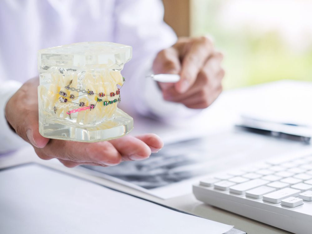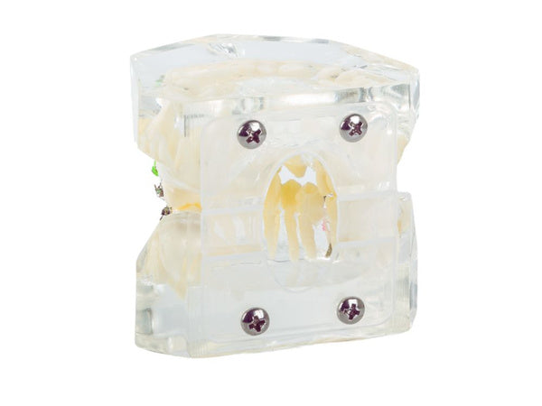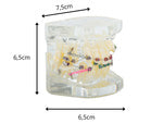 Mokomasis dantų modelis su žandikauliu ir breketais – skirtas odontologijos mokymuisi ar edukacijai. Parodo dantų padėtį ir breketų veikimą. Tinkamas demonstracijoms.