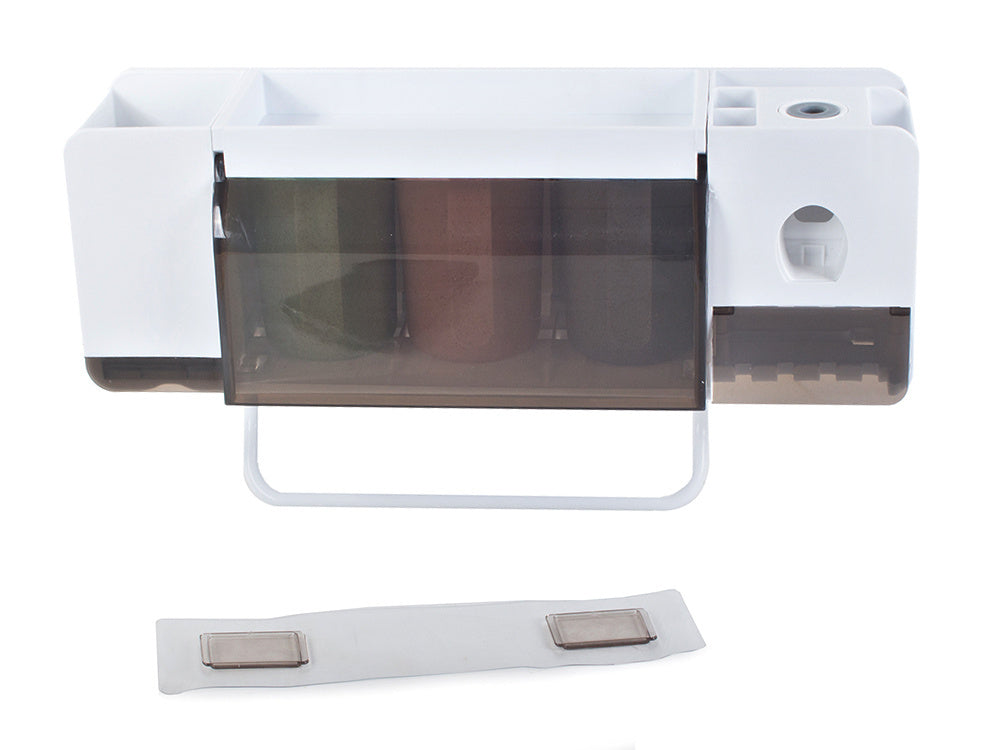 Organizuokite savo vonios kambarį su Dantų šepetėlio puodelio organizatoriumi dantų pastos dozatoriumi. Šis funkcionalus ir modernus organizatorius suteikia galimybę tvarkingai laikyti dantų šepetėlius, puodelius ir kitus reikmenis. Su 3 talpiais puodeliais, kurių kiekvieno talpa 300 ml, Jūs galėsite patogiai laikyti dantų pastą bei kitus kosmetikos produktus.
