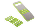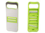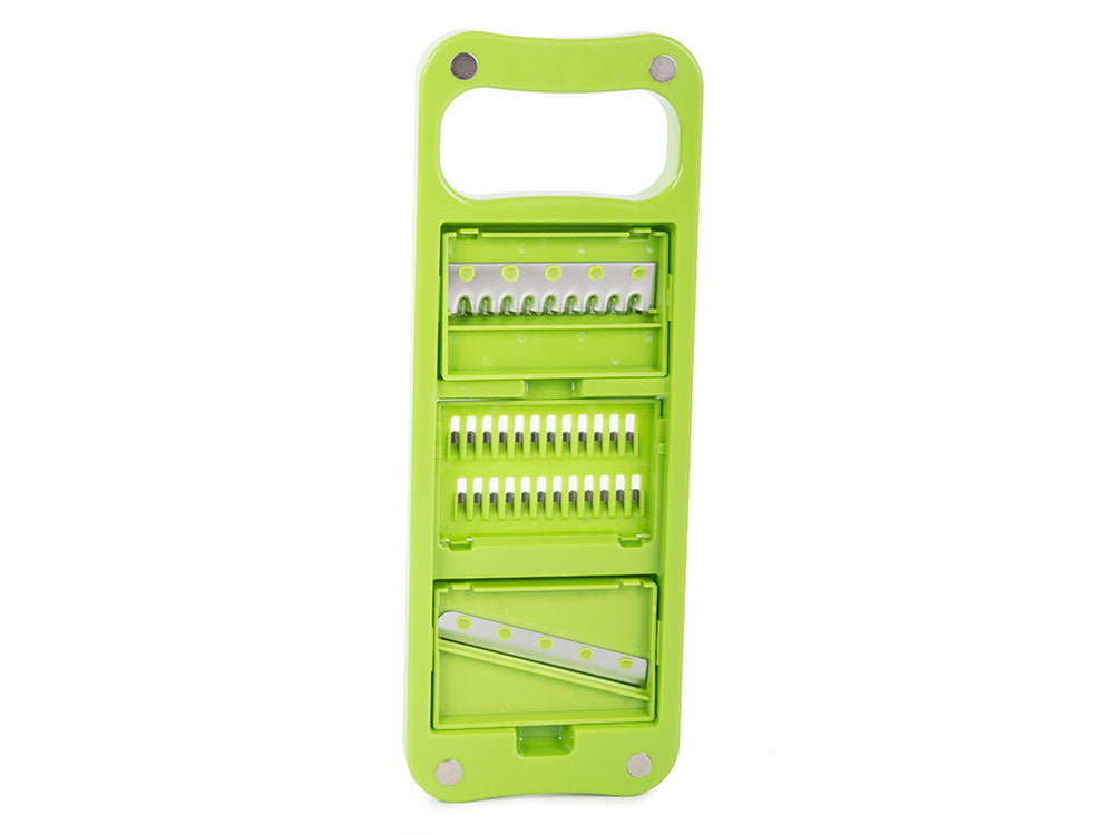 - Keturi keičiami peiliukai – pjaustykite skirtingais būdais: griežinėliais, smulkintuvais, dideliais poliais ir mažais strypais.