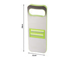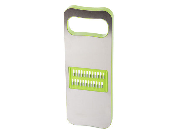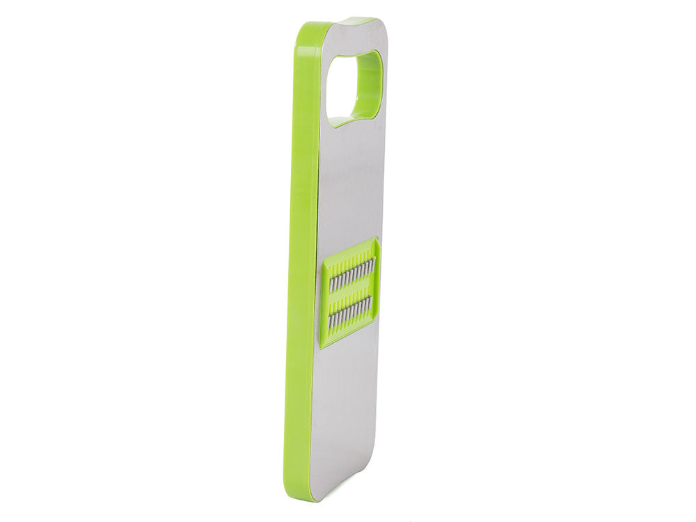 Ši daržovių tarka yra pagaminta iš tvirto plastiko ir plieno, užtikrinančio ilgaamžiškumą ir patikimumą. Su žalia - inox spalva ji puikiai įsilies į bet kurią virtuvės interjerą.