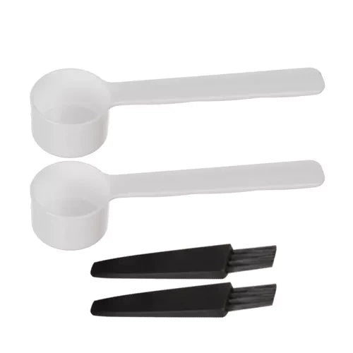 - medžiaga: PP, kiti: silikonas + nerūdijantis plienas + 2 PP matavimo šaukštai + 2 šepečiai medžiaga: PP, kita: nailonas