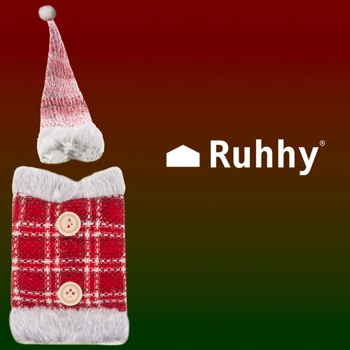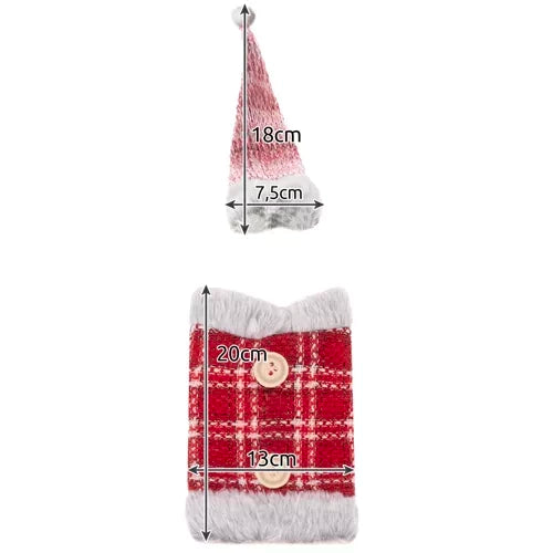 - KLASIKINĖ KALĖDŲ TEMA - buteliuko dėklas + kepurė turi klasikinį Kalėdų motyvą. Komplekte yra kostiumas su kepure ir pomponas. Papildomos dekoracijos yra sagos ir kailis .
