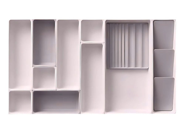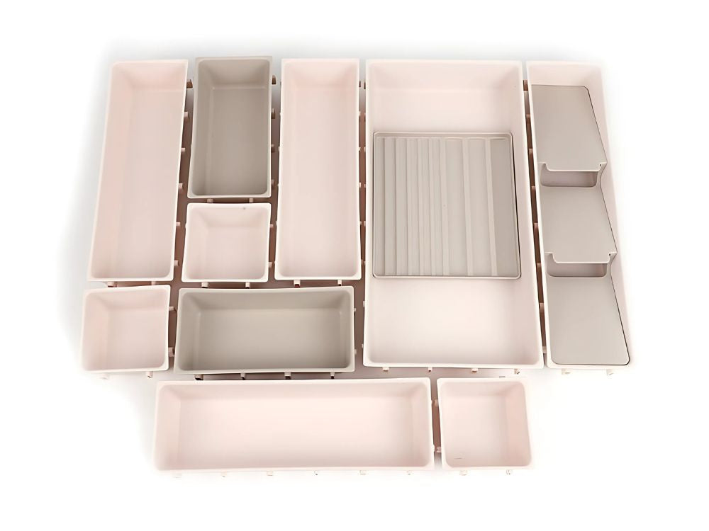 - Modulinis dizainas: Organizatorius sudarytas iš 12 elementų, kuriuos galima pritaikyti bet kokiam stalčiui ar erdvei.