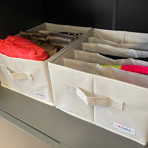 - ERDVĖS ORGANIZAVIMAS - Dėžutę galima lengvai sulankstyti plokščiai, kai ji nenaudojama, taip sutaupant vietos. Organizatorius gali būti laikomas lovoje, stalčiuje, spintoje, persirengimo kambaryje ar spintelėse . Tai padidina saugojimo vietą ir puikiai tinka daiktams, kurie nenaudojami labai dažnai. Dėka standumo, dėžutės yra tvirtos ir gali būti sukraunamos .