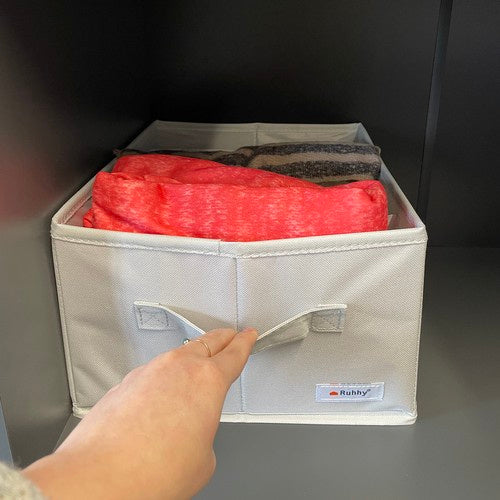 - LENGVAS NEŠTI - konteineris turi tvirtas rankenas šonuose, iš tos pačios medžiagos kaip ir visas organizatorius. Jomis lengviau pakelti ir nešti konteinerį, net jei jis pripildytas drabužių.