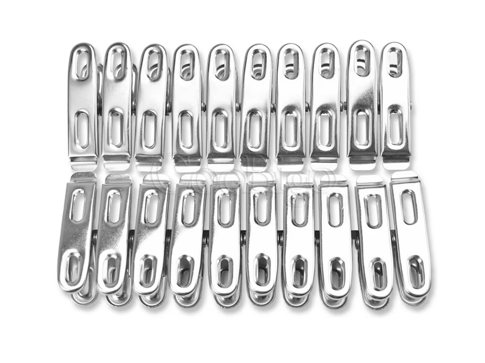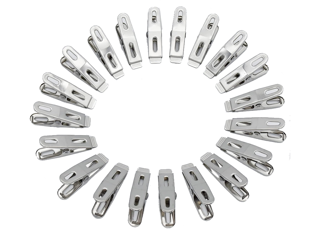 Šiame rinkinyje rasite 20 spaustukų, kurie puikiai tinka ne tik drabužių kabinimui, bet ir daugybei kitų naudingų užduočių: