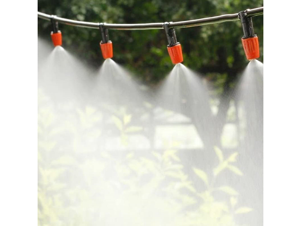 Ši drėkinimo sistema ne tik vėsina, bet ir puikiai tinka augalams laistyti. Dėl reguliuojamų purkštukų galite lengvai ir efektyviai laistyti visus savo sodus, gėles ar vazoninius augalus.