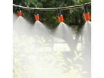Patirkite malonų vėsinimo efektą karščiausiomis dienomis su drėkinimo sistema vandens užuolaidų purkštuvu 20 m. Šis inovatyvus purkštuvas yra sukurtas taip, kad sumažintų aplinkos temperatūrą net iki 10-12 laipsnių Celsijaus, kai įrengtas po stogeliu terasoje ar skėčiu. Be to, vandens dulksna efektyviai pašalina teršalus iš oro ir atbaido skraidančius vabzdžius.