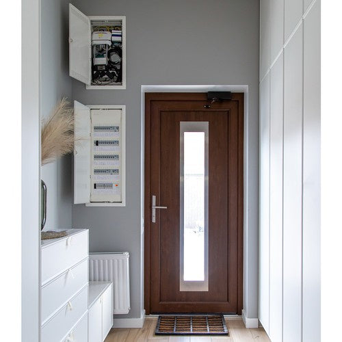 - DVIGUBAS REGULIAVIMAS – durų pritraukėjas turi galimybę reguliuoti uždarymo ir uždarymo greitį. Pabaigoje durys gali sulėtėti arba pagreitėti. Pavyzdžiui, galime nustatyti, kad mums išėjus durys užsidarys greitai, arba, priešingai, lėtai. Tai ypač naudinga pagyvenusiems žmonėms, neįgaliesiems ir vaikams – duris atidaryti ir uždaryti tampa lengviau .